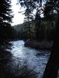 On Tuesday 1-7-2003 a friend and I decided to go fishing on the Metolius River. We decided to try our luck downstream of bridge 99. We ended up hiking several miles as the river is very fast and has imited fishing holes. I was looking for animal tracks in the 2-3 inches of snow that covered the trail. There were a few deer and elk tracks and not much else. Being a bow hunter I am always scouting looking for possible places to hunt. I was hoping to see some turkey tracks , as this is the place I have been hunting lately, and the season will be opening soon.