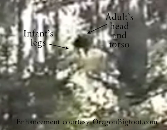 The most compelling argument for the authenticity of the Freeman footage is the "baby lift" sequence toward the end of the footage. Discovered by Legend Meet Science and Monsterquest producer Doug Hajicek after Freeman's death, the latter part of the footage presumably depicts an adult Sasquatch lifting a juvenile. On a high-definition television, the small creature's ankles and feet can be seen articulating. Despite the fact that Freeman states within the footage in a breathless voice, "There's two of 'em!", Hajicek believed that Freeman was referring to two adults... Freeman never mentioned the THIRD, or youngest, individual to Hajicek when he made the film available for Legend Meets Science and Hajicek only discovered the third subject after viewing the image on a high-definition screen, which Freeman presumably never did.